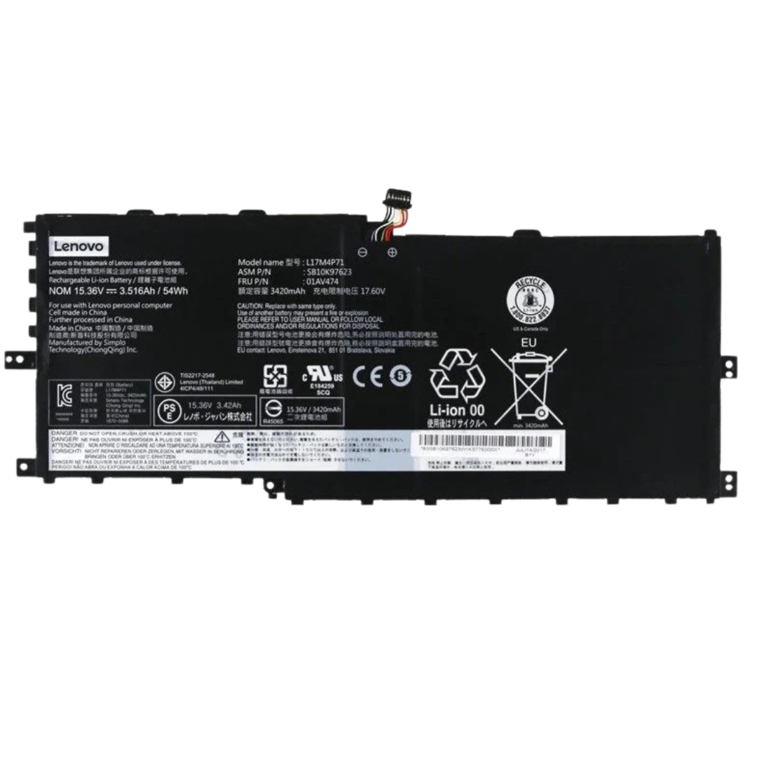 بطارية Lenovo L17C4P71 أصلية – متوافقة مع ThinkPad X1 Yoga (الجيل الثالث) – سعة 54 واط/ساعة