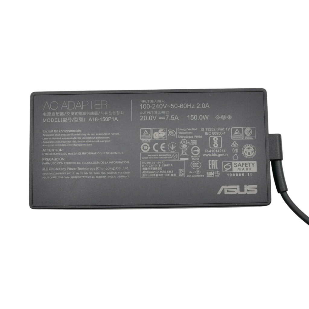شاحن اسوس أصلي 150 واط – 20V 7.5A – Type 6.0×3.7mm – ASUS ROG Zephyrus – Original Asus Charger – رقم القطعة ADP-150CH B