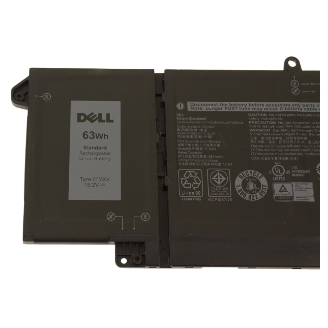 بطارية لاب توب ديل أصلية لموديلات Latitude (5320 و 7320 و 7420 و 7520) – سعة 63Wh – رقم القطعة 7FMXV. قطع غيار لابتوب بجودة عالية.