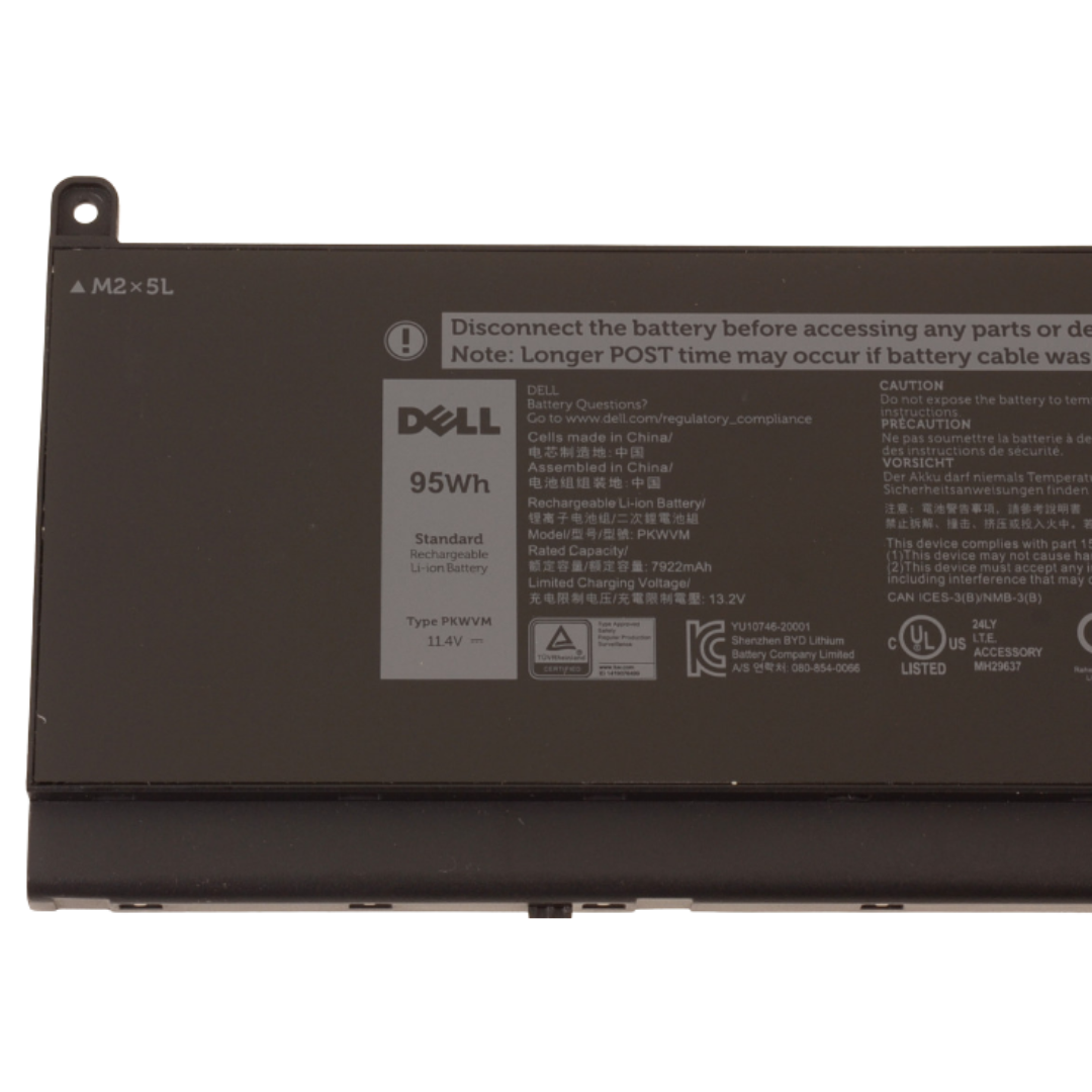 بطارية لاب توب ديل أصلية لموديلات Precision (7550 و 7560 و 7750 و 7760) – سعة 95Wh – رقم القطعة PKWVM. قطع غيار لابتوب بجودة عالية.