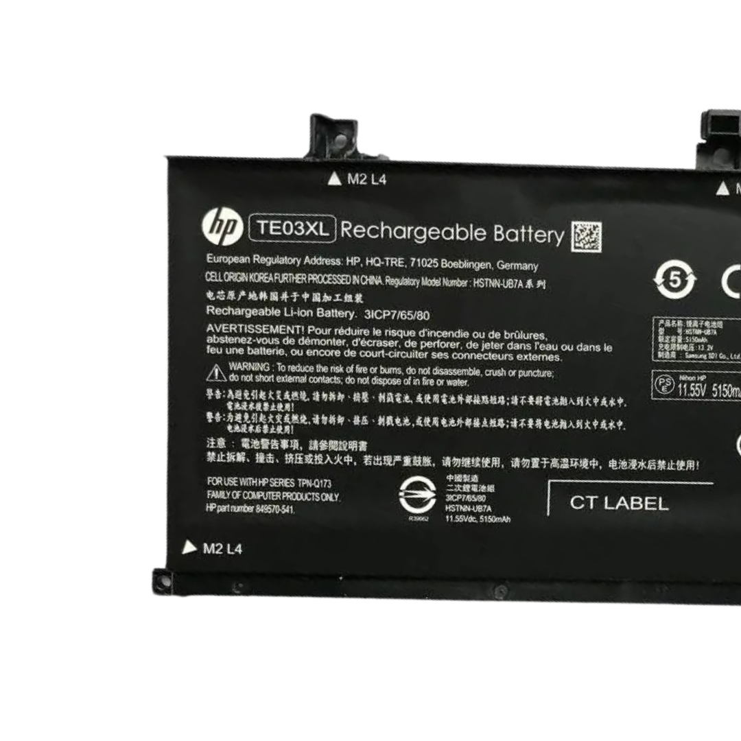 باختيارك لبطارية HP TE03XL، ستحصل على أداء موثوق وطاقة تدوم طويلاً لدعم جميع احتياجاتك اليومية. هذه البطارية هي الحل الأمثل للحفاظ على إنتاجيتك أثناء العمل أو الاستمتاع بالمحتوى الترفيهي.