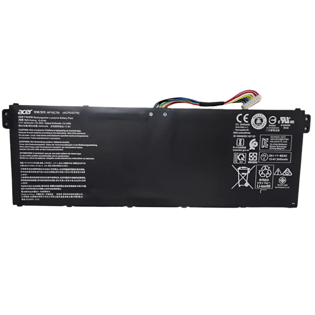 بطارية Acer AP18C7M أصلية بسعة 55.9Wh وفولت 15.4V. متوافقة مع أجهزة Acer Spin 5, Swift 3, Swift 5, ConceptD 3, TravelMate Spin P4 وPorsche Design Book RS. بطارية أصلية توفر طاقة مستقرة وأداء قوي.