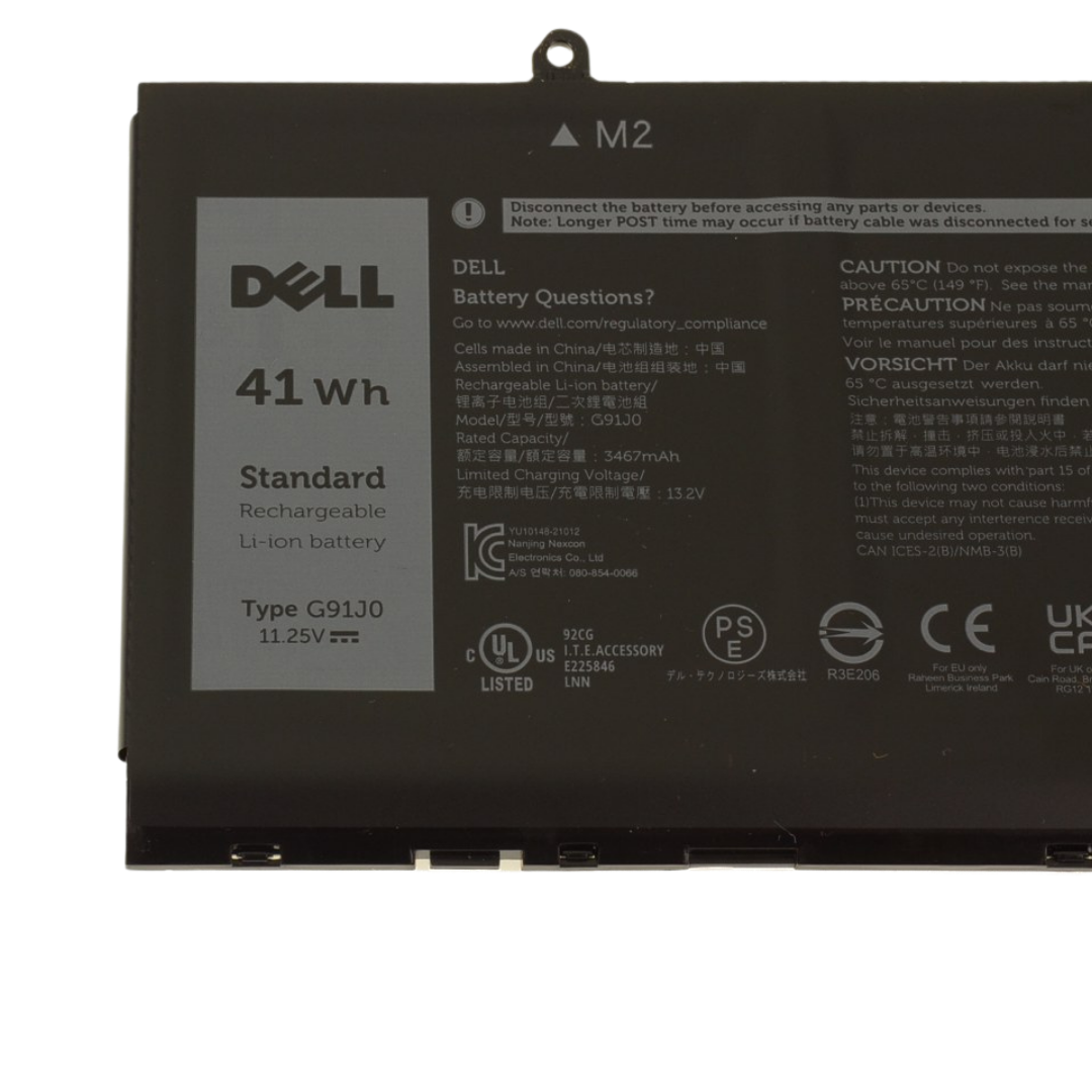 بطارية Dell G91J0 أصلية هي بطارية ليثيوم أيون بجهد تقريبي ~11.25 فولت وبسعة ~41 واط/ساعة صممت لتكون بديلًا أصليًا موثوقًا لبطاريات Dell في أجهزة Latitude, Inspiron وVostro من الفئات الحديثة.